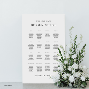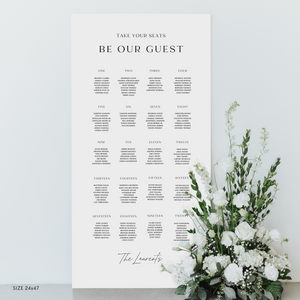 Each sign is crafted with care and attention to detail. Elevate your event with this stunning seating chart, guiding your guests to their tables and allowing you to enjoy your special day while making an unforgettable entrance as newlyweds.